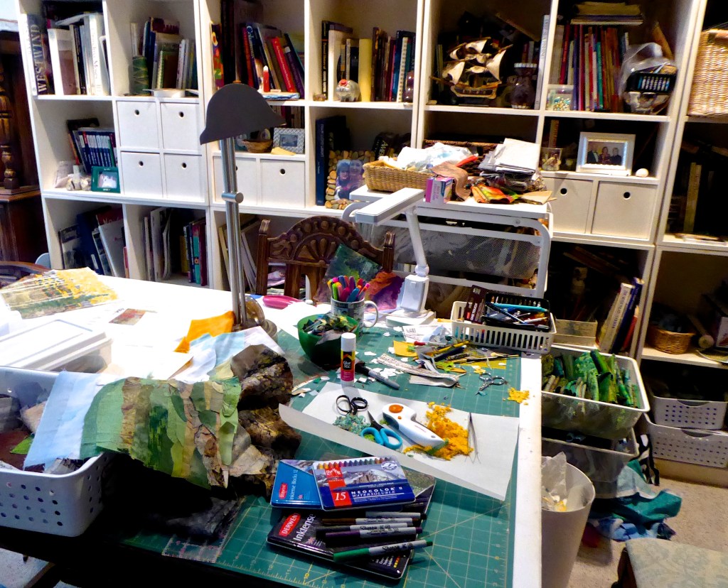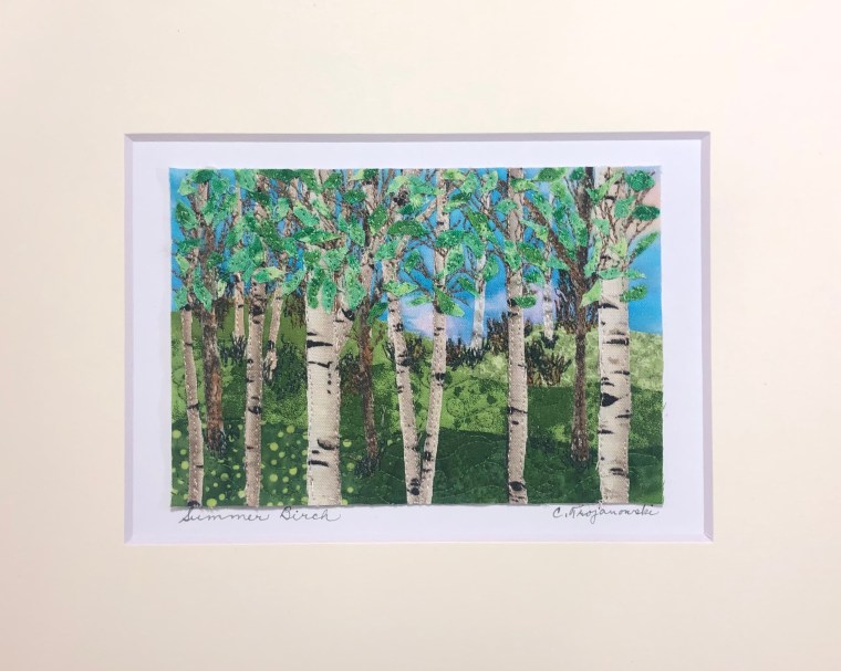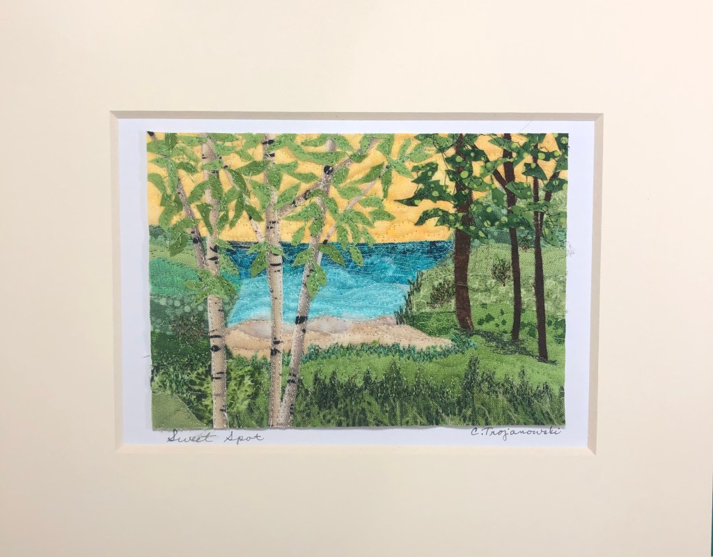I learned to sew as a teen and have tried my hand at various art mediums as an adult – drawing, watercolor painting, mosaic tile, jewelry. Quilting entered the picture when I replaced my going-to-college machine with one that was computerized and could do all the tricks. Several years ago, I taught myself free motion stitching. The secret? Hours of practice! Now I find the art quilt creations combine my love of fabric and design with my sewing skills and have become an exciting avenue for me.