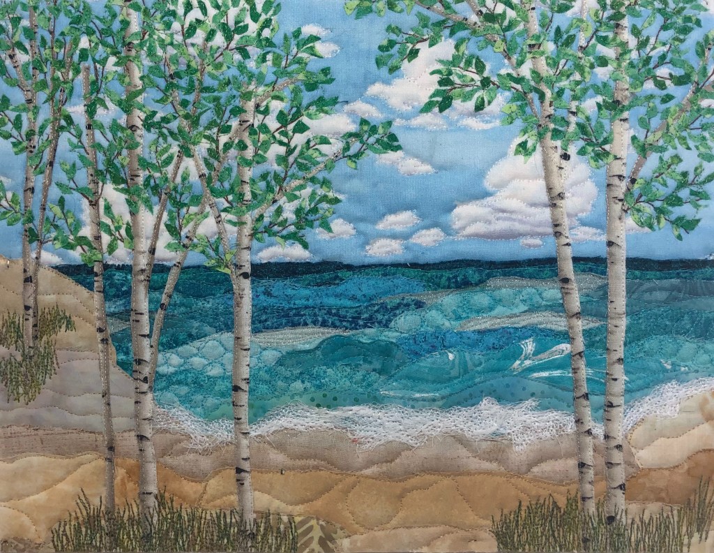 Creating art quilts feeds my passion for working with fabric, color and design. My pictures look like paintings from a distance, yet closer examination proves them to be pieces of fused fabric embellished with free motion stitching and thread sketching. The quilts are original designs using photographs for inspiration often combining elements from several pictures.